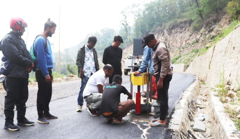 कालोपत्र भइरहेको उक्त सडकको नियमित अनुगमन तथा कोर कटर मेसिनका माध्यमबाट ल्याब परीक्षण गर्ने काम भइरहेको कार्यालयका ल्याब टेक्निसियन रिपुकुमार पाण्डेले जानकारी दिए । स्थानीय तथा विषेशज्ञको उपस्थितिमा प्वाल पारेर सडकको गुणस्तर परीक्षण गरिरहेको उनले बताए । सडक ‘आस्फाल्ड’ प्रविधिमा चार सेन्टिमिटर मोटाइमा कालेपत्र भइरहेको पाण्डेको भनाइ थियो । “हामीले यसको गुणस्तरमा विषेश ध्यान दिएका छौँ”, उनले भने, “कालोपत्र भएको चार ठाउँमा परीक्षण गर्दा आवश्यक मापदन्डअनुसार नै निर्माण भएको छ । कतिपय ठाउँमा चारको ठाउँमा सात सेन्टिमिटरसम्म मोटाइ छ । निर्माण कम्पनीले हाम्रो प्रत्यक्ष निग्रानीमा कालोपत्र गरिरहेको छ ।”