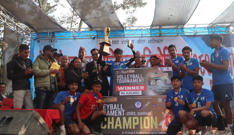 नेपालको राष्ट्रिय खेल भलिबलको प्रवर्धन र स्थानीय खेलाडीको प्रतिभा पहिचान तथा खेलकुदमार्फत भातृत्व र पर्यटन विकास गर्ने उद्देश्यले आयोजित तेस्रो मेयर कप भलिबल प्रतियोगिता माघ २९ गते सम्पन्न भएको छ । फाइनल खेलमा आमचोकले रामप्रसादराई गाउँपालिकालाई सोझो सेटमा पराजित गर्दै उपाधि हात पारेको हो । भोजपुर नगरपालिकाको मुख्य प्रायोजनमा सम्पन्न प्रतियोगितामा वडा नम्बर ३ र ४ कार्यालय दावाँ, कृष्णलक्ष्मी–लक्ष्मी श्रेष्ठ स्मृति प्रतिष्ठान काठमाडौं तथा दावाँली मिलन क्लब काठमाडौं सह–प्रायोजक रहेका थिए। प्रतियोगिताको आयोजना दावाँली मिलन क्लब दावाँ, भोजपुरले गरेको हो। नेपालको राष्ट्रिय खेल भलिबलको विकास, स्थानीय खेलाडीको प्रतिभा पहिचान, युवालाई खेलकुदप्रति आकर्षित गर्नुका साथै खेलकुदलाई पर्यटनसँग जोड्दै आफ्ने जन्मस्थल दावांलाई विशुद्द सानाजिक कृयाकलाप द्वारा अन्तराष्ट्रिय स्तरमै लोकप्रिय वनाउने क्लवको उद्देश्य अनुरूप भलिवल प्रतियोगिता र दावां सांस्कृतिक कार्यक्रम आयोजना गरिएको नेपाल भलिबल संघका महासचिव तथा दावाँली मिलन क्लब, काठमांडौ अध्यक्ष रोशन श्रेष्ठले जानकारी दिनुभयो ।